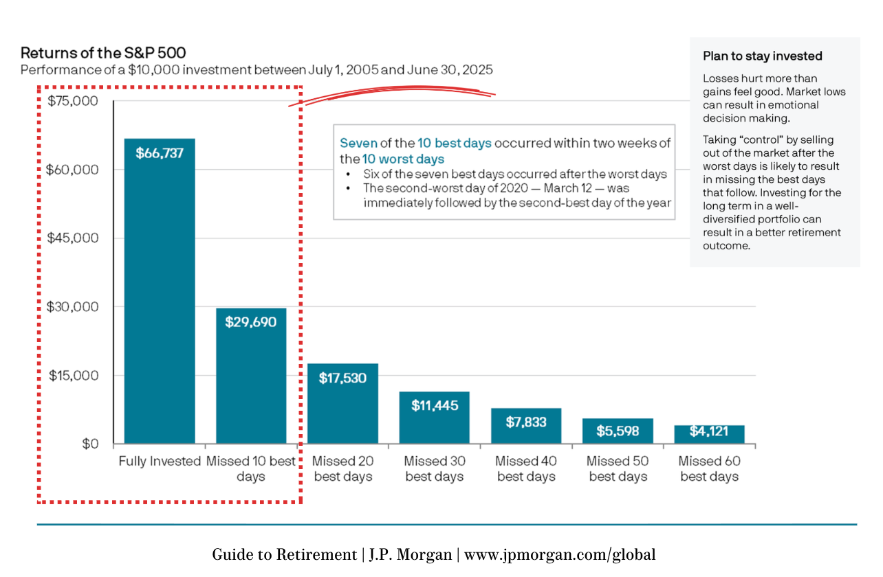 Just missing 10 days in a 20-year span could cost you 50% of your returns. 50%!