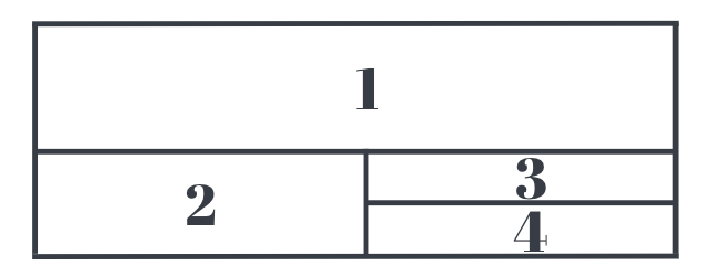 The image is divided into four discrete sections by time allocation. Since you are dividing an hour, the top box represents 50% of the hour, or 30 minutes. The lower left box represents 25% of the time or 15 minutes. The bottom right boxes represent 1/8th of that time or roughly 7 1/2 minutes each.